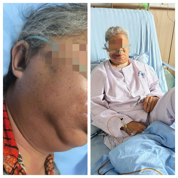 一周后,何奶奶突感颌面部肿胀,状况日益严峻,甚至呼吸都变得有些艰难。子女见状,察觉事态严重,火速将她送往玉溪市人民医院救治。