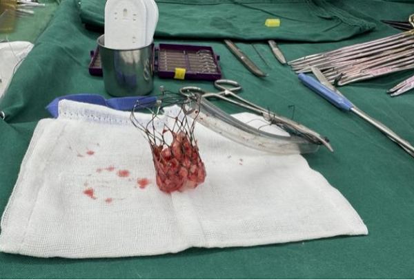 精准瓣膜移除与彻底清创:手术的核心与难点在于移除功能障碍的介入瓣膜。术中可见介入瓣膜瓣叶撕裂,并有少许赘生物附着,轻微钙化,并与周围重要组织结构紧密粘连,使用术前文献学习掌握的相关手术技术,在避免损伤周围脆弱心脏组织的前提下,完整、安全地移除了介入瓣膜,并对瓣周组织进行了彻底的清理,切除自身瓣叶组织,为新瓣膜的植入创造了良好的基础。